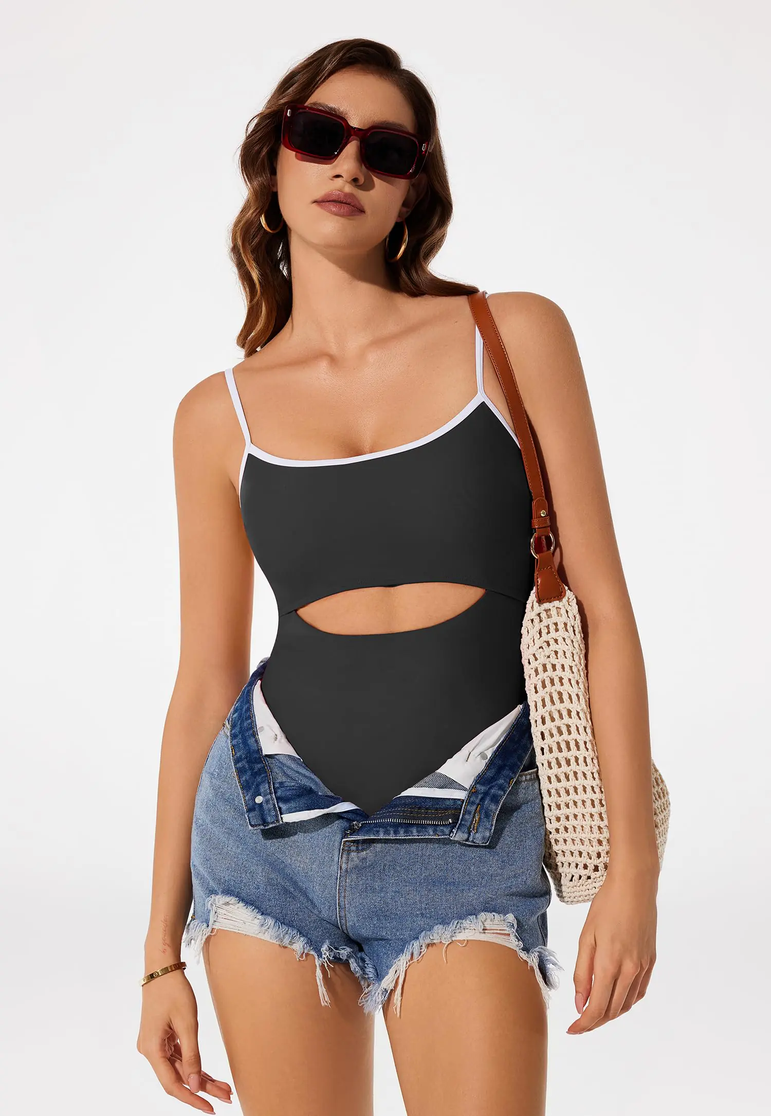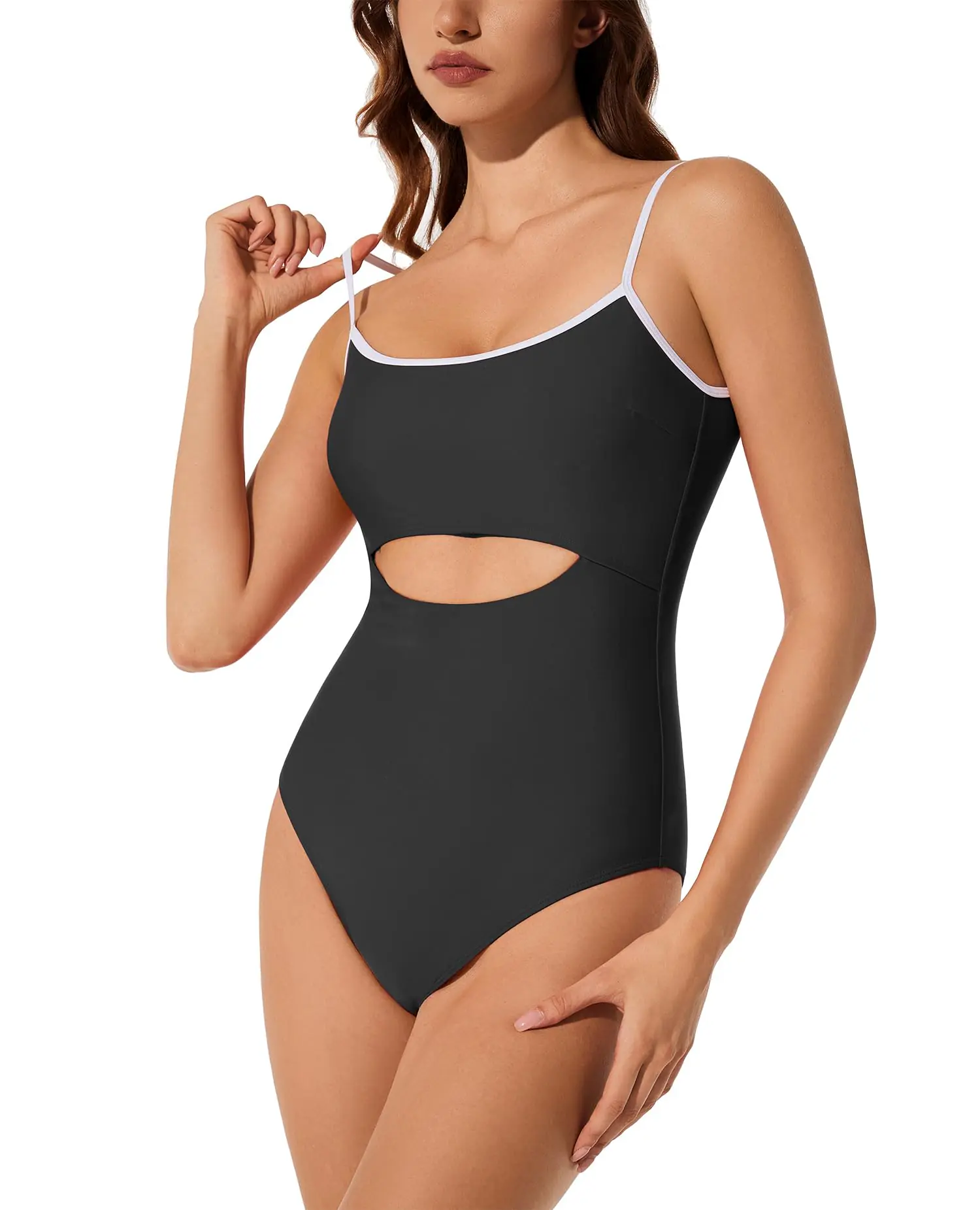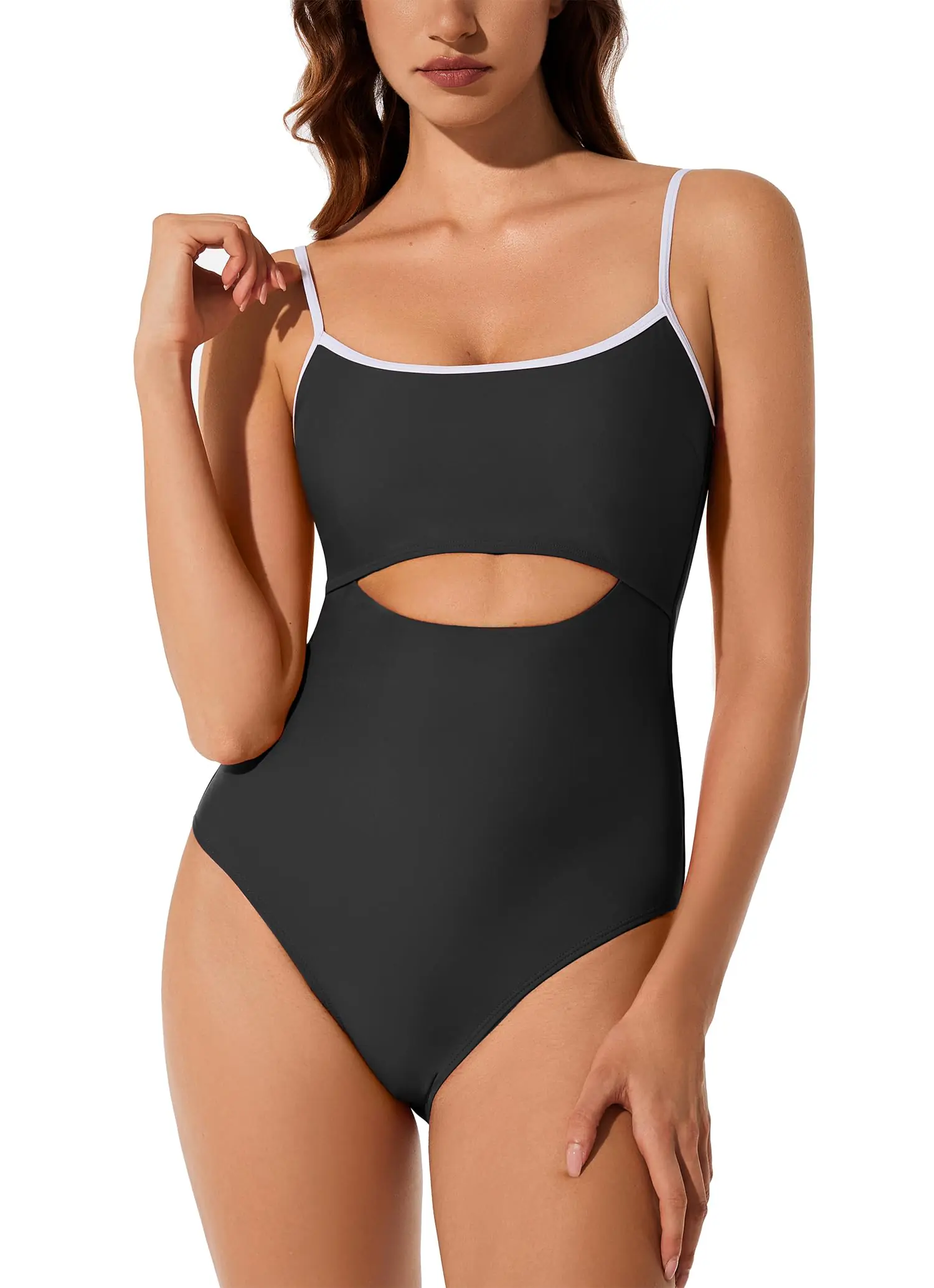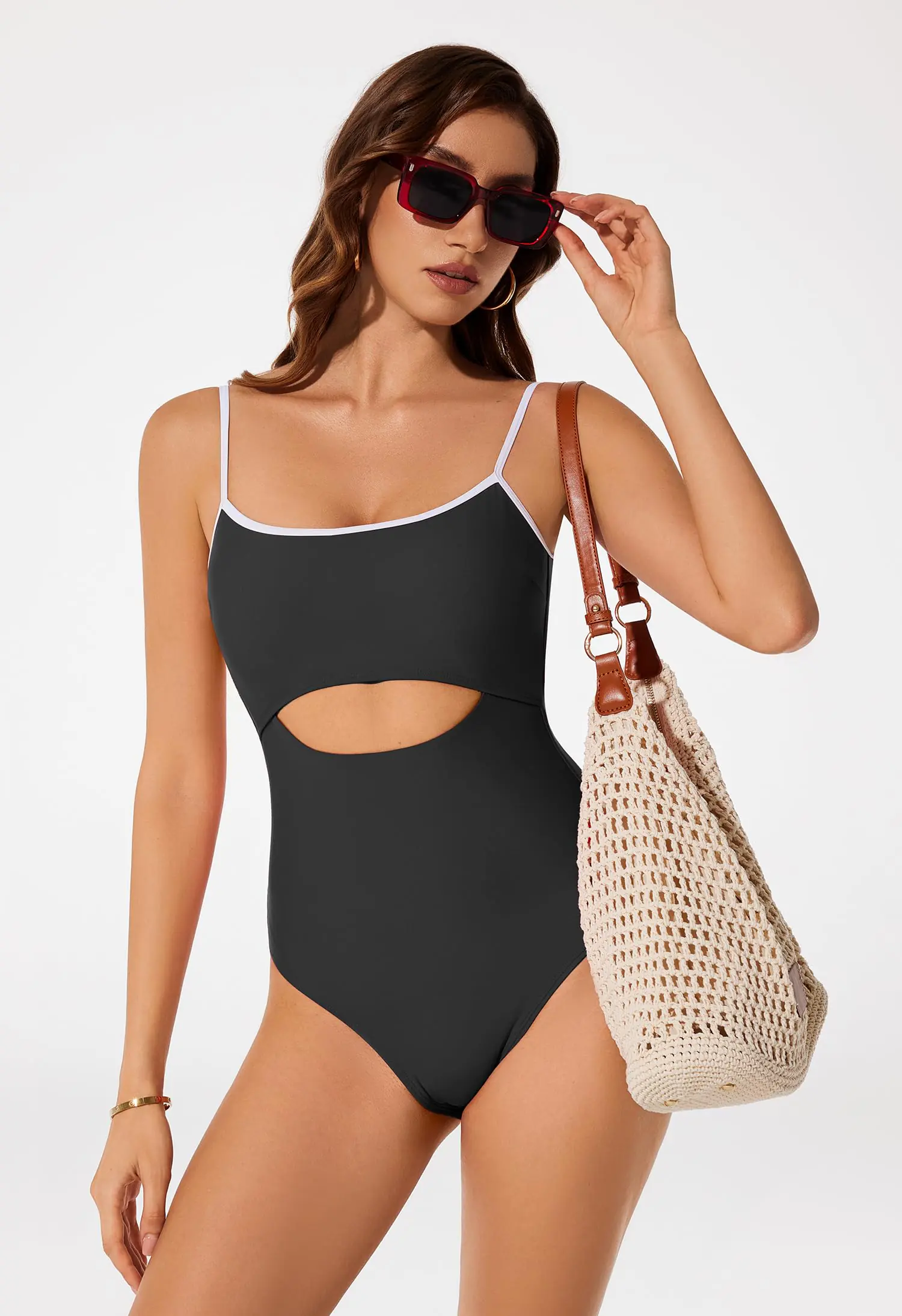 - This women one piece swimsuit features a trendy cut out waist and delicate spaghetti straps, adding a stylish touch to your swimwear. The colorblock trim creates a chic contrast. Perfect for beach vacations, pool parties, or summer getaways.